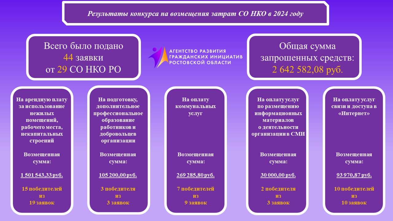 🗣Напоминаем, что в этом году Вы можете компенсировать затраты вашей организации за 2024 год по пяти направлениям: арендная плата, дополнительное профессиональное образование сотрудников и волонтеров, коммунальные услуги, публикации в СМИ и услуги за интернет.
