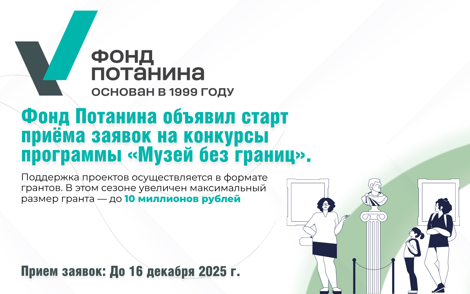 Фонд Потанина объявил старт приёма заявок на конкурс «Музей 4.0» в рамках программы «Музей без границ». Это ваш шанс получить грант на реализацию смелых идей и вывести музейную работу на новый уровень!