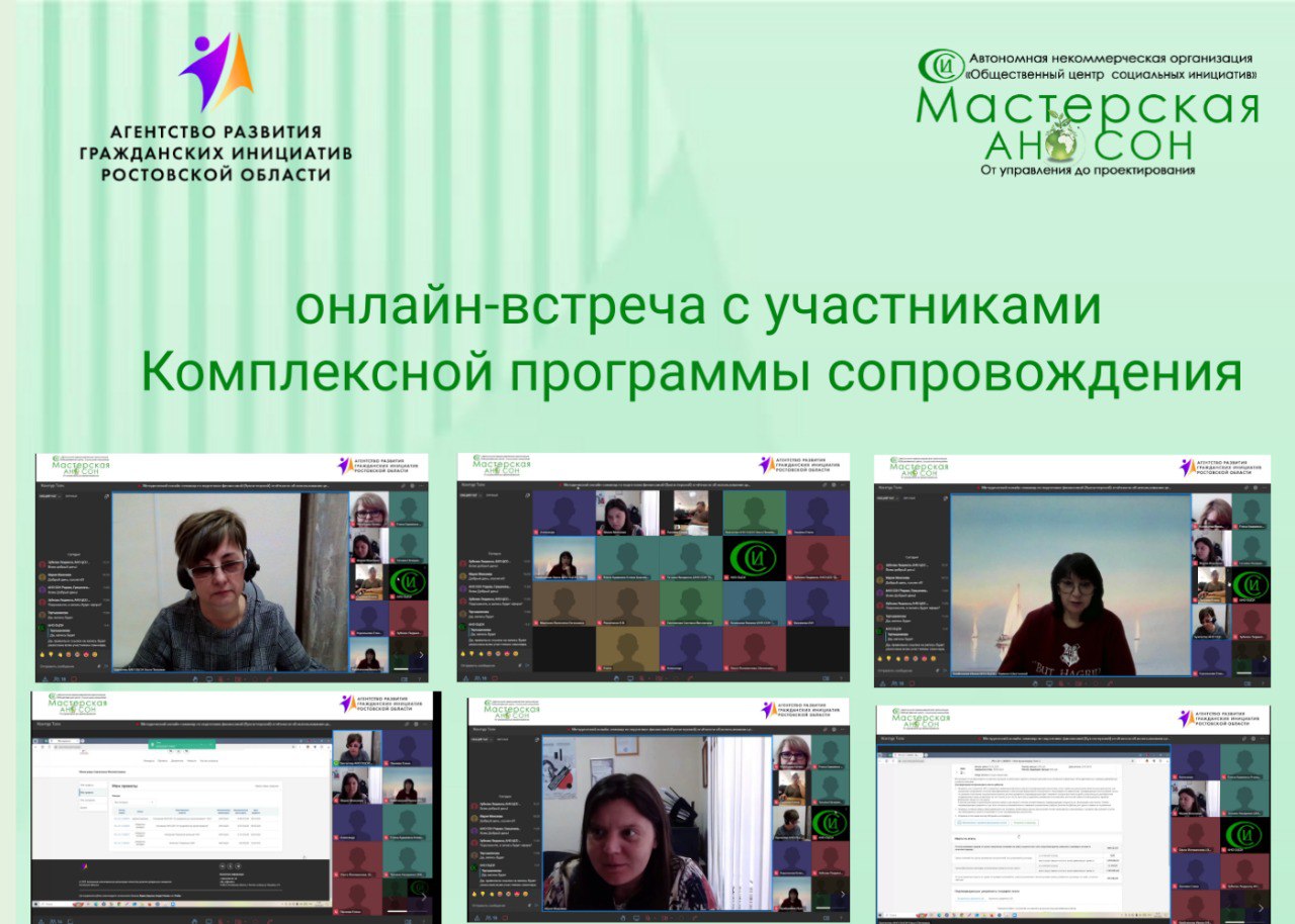 Вчера была проведена онлайн-встреча с участниками программы сопровождения, спикером выступила Ольга Петровна Макарова, бухгалтер АНО ОЦСИ. Как обычно, поддерживала Мария Моисеева, менеджер программ проекта «Мастерская АНО СОН: от управления до проектирования», а также наш координатор проекта Ирина Николаевна Крайнюкова.