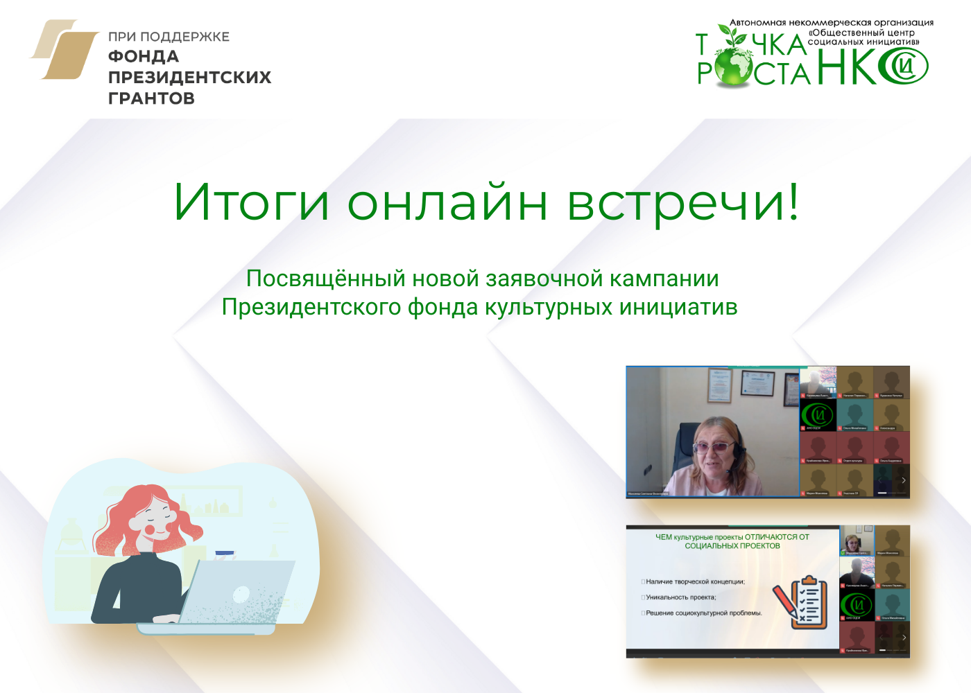 Третьего июля прошла онлайн-встреча в рамках проекта «Точка роста НКО», реализуемого с использованием средств гранта Президента РФ, предоставленного Фондом президентских грантов.