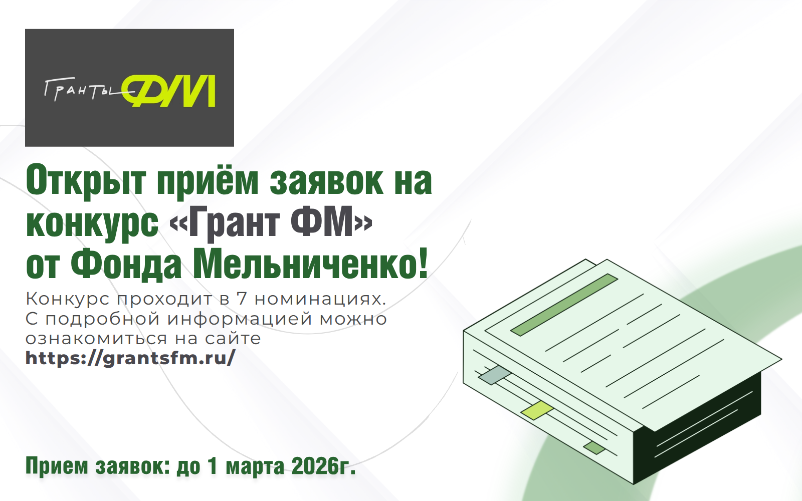 📄 Подробная информация о конкурсе, условиях участия и требованиях к заявкам доступна на официальном сайте: https://grantsfm.ru/