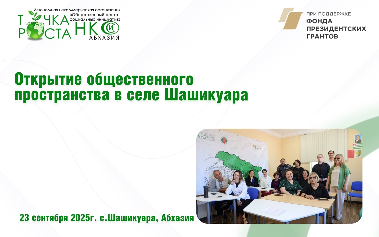Мероприятия проходят в рамках проекта «Точка роста НКО: Абхазия», реализуемого с использованием средств гранта Президента РФ, предоставленного Фондом президентских грантов.